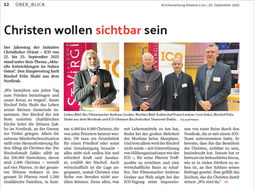 Die in Linz ansässige ICO unterstützt seit rund 35 Jahren die Christen und Christen im Orient. Zahlreiche Hilfsprojekte werden jedes Jahr in Syrien, im Irak, im Libanon, in Palästina und in